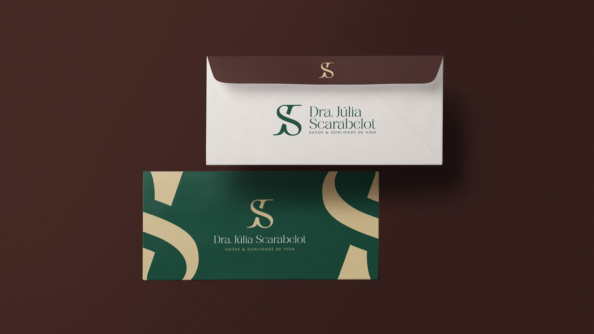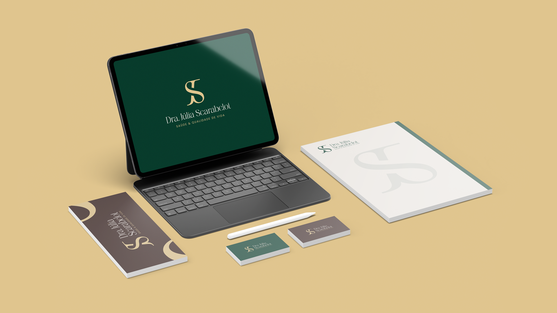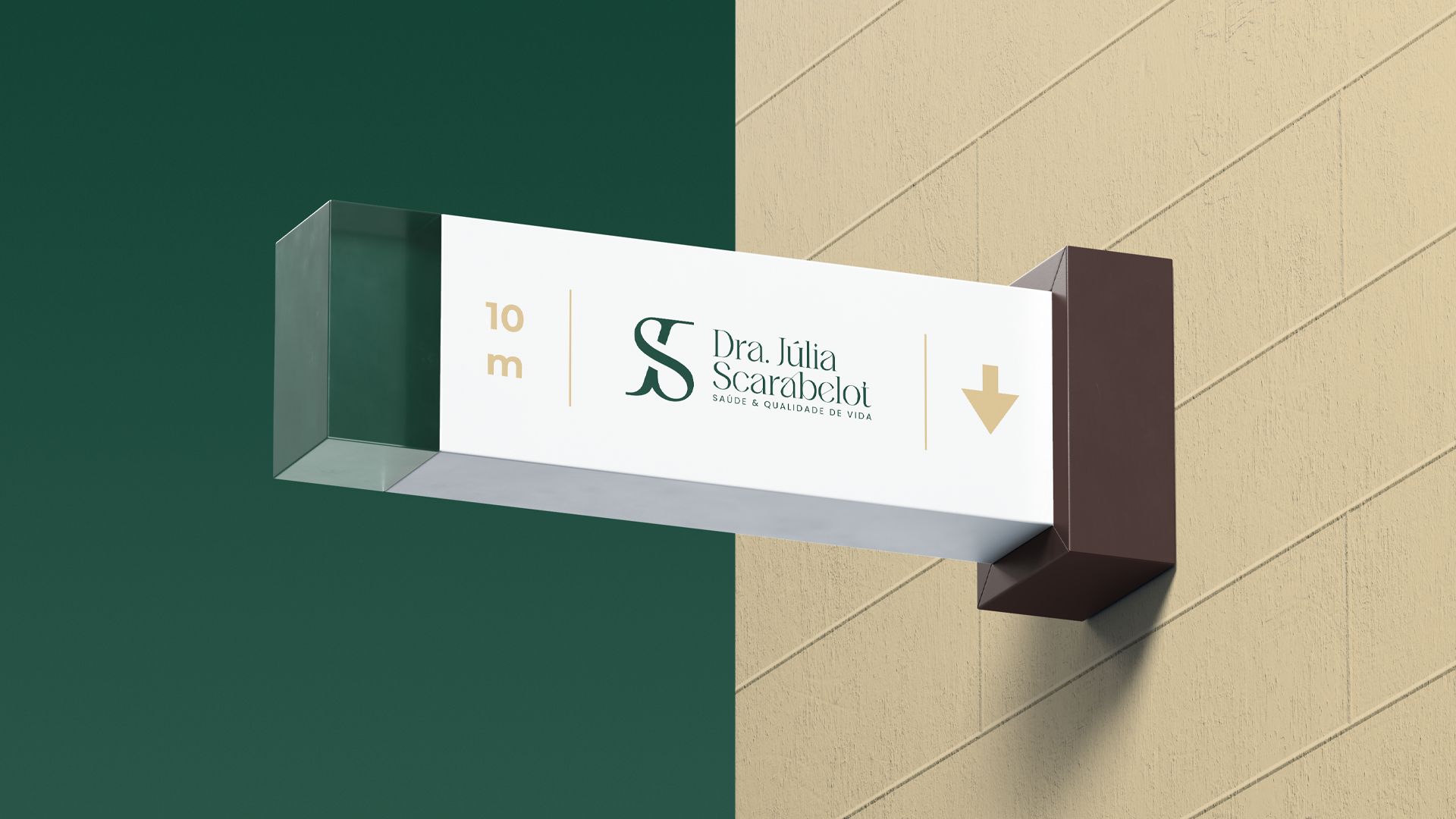 O monograma da marca é construído a partir das iniciais J e S, em que o S foi desenhado intencionalmente para remeter ao símbolo do infinito. Essa solução gráfica identifica a profissional e, ao mesmo tempo, transmite a ideia de continuidade, cuidado personalizado e evolução constante, valores que refletem o acompanhamento em saúde, performance e longevidade. A paleta de cores e a tipografia reforçam esse posicionamento ao unir sofisticação, clareza e acolhimento, criando uma identidade visual que traduz ciência, humanidade e excelência.