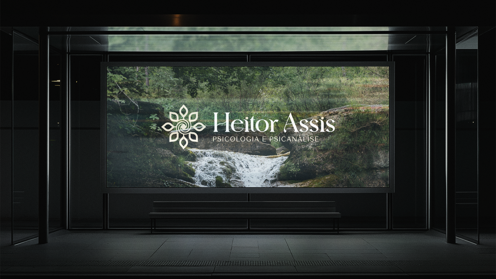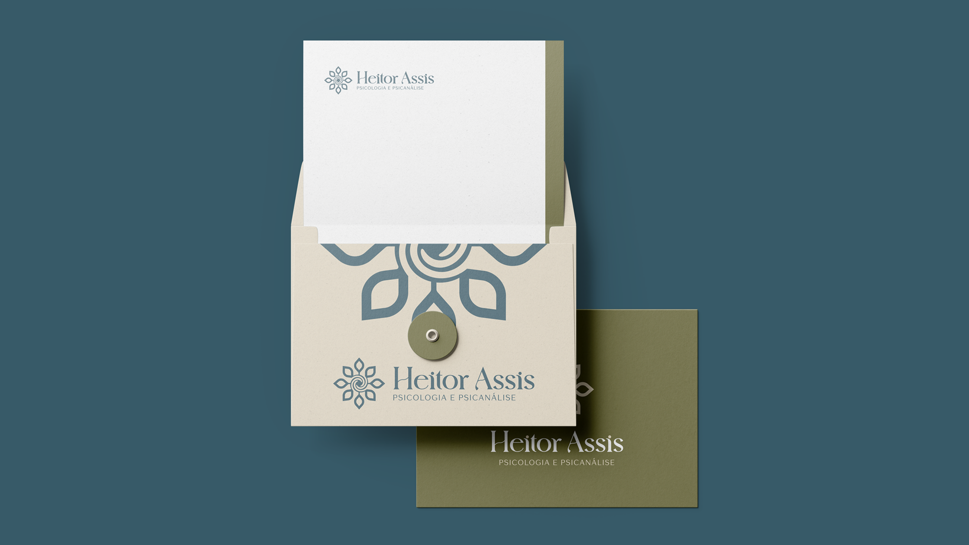 A identidade visual de Heitor Assis foi inspirada nos princípios da psicanálise, como profundidade, introspecção e transformação. O símbolo traz uma espiral entrelaçada a folhas, representando os ciclos internos e o crescimento contínuo por meio da natureza. A paleta cromática é composta por azul profundo (como rio), verde suave (como folha) e tons terrosos — combinação que evoca introspecção, equilíbrio emocional e acolhimento. A tipografia orgânica e limpa transmite empatia e modernidade. O resultado é uma marca sensível, madura e alinhada ao propósito terapêutico do profissional.