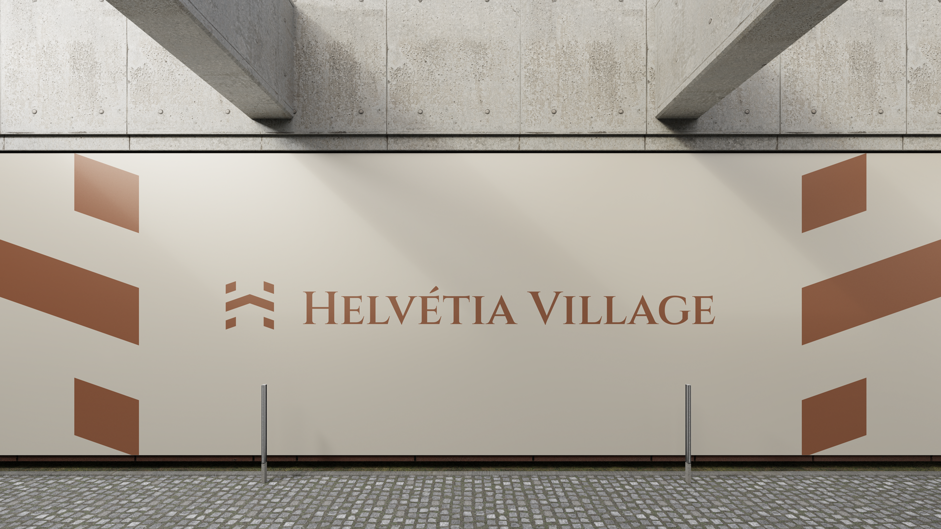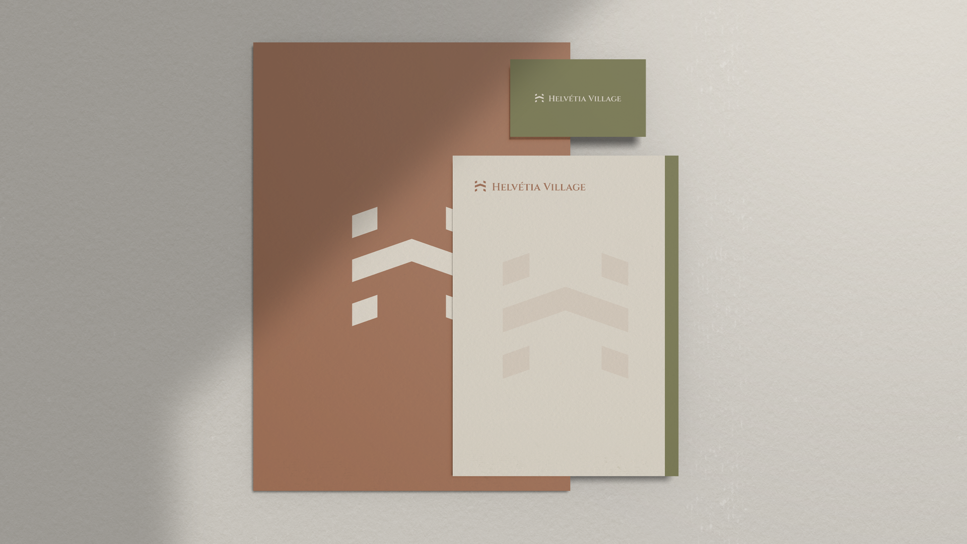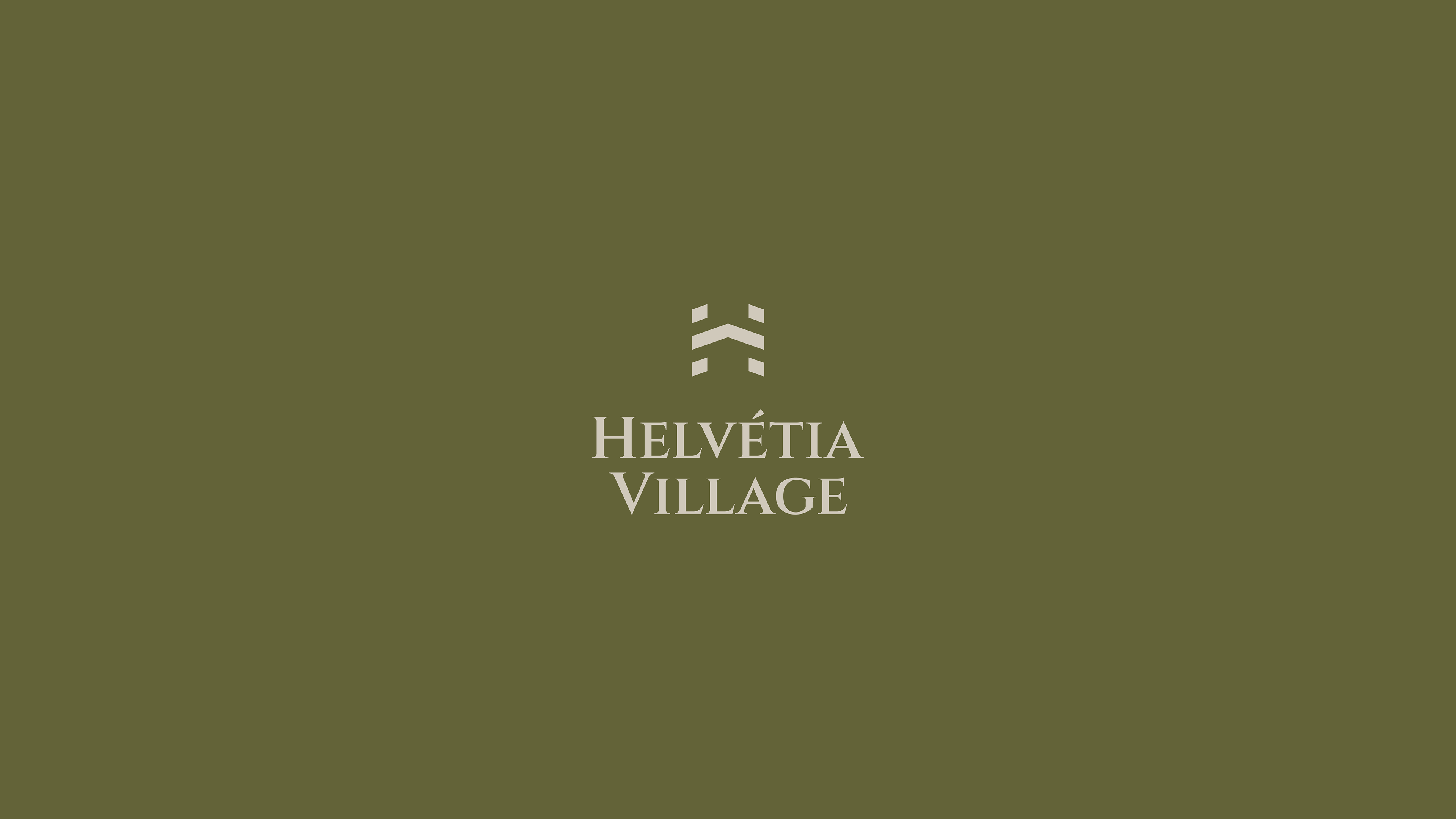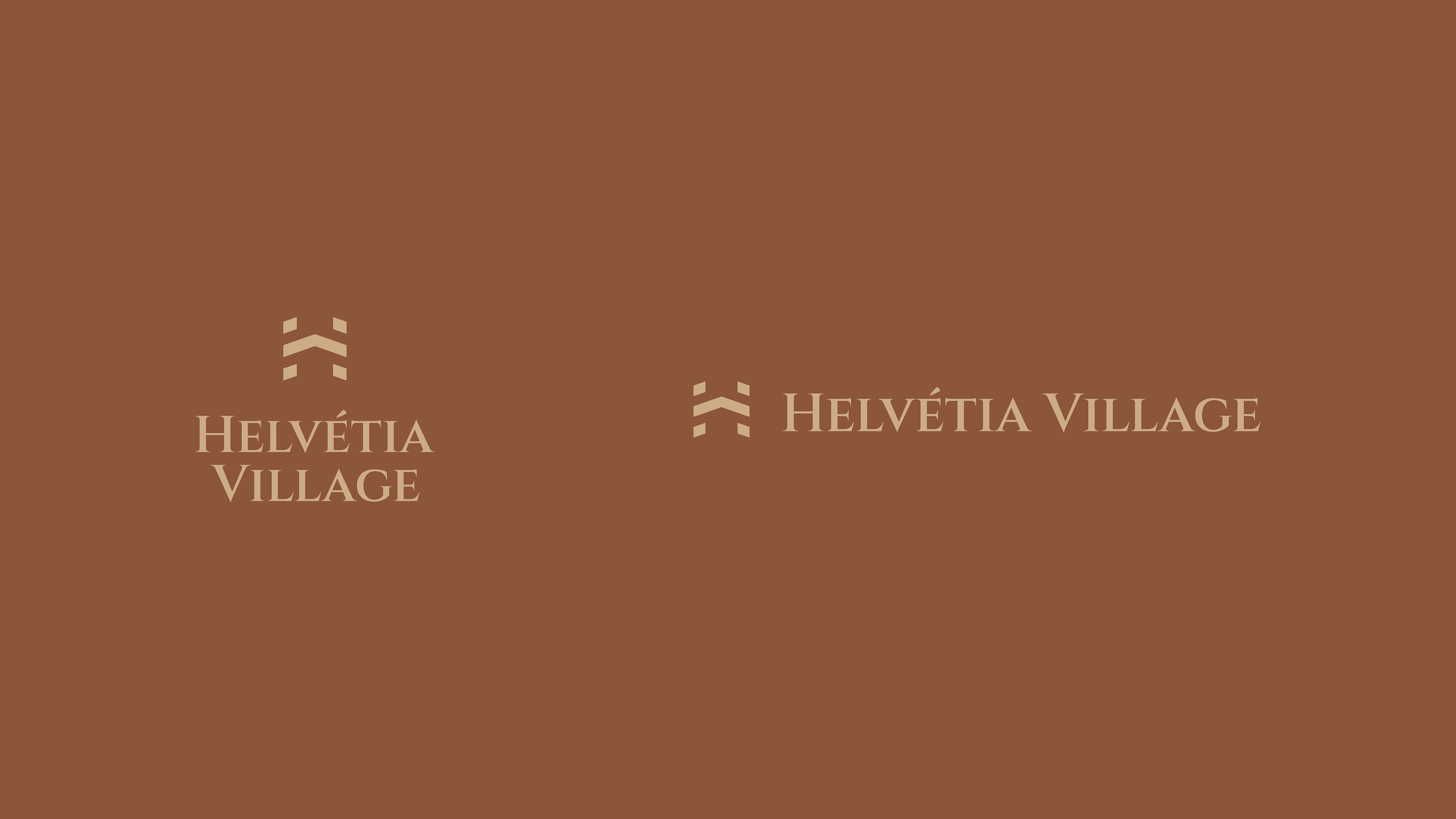 A identidade visual do Helvétia Village traduz a união entre sofisticação e atemporalidade, combinando modernidade com um tom clássico. O logotipo apresenta um monograma construído a partir da inicial da marca, transmitindo exclusividade, prestígio e solidez. A tipografia reforça esse conceito com linhas elegantes e clássicas, que equilibram tradição e contemporaneidade, refletindo o estilo refinado e acolhedor do empreendimento.
