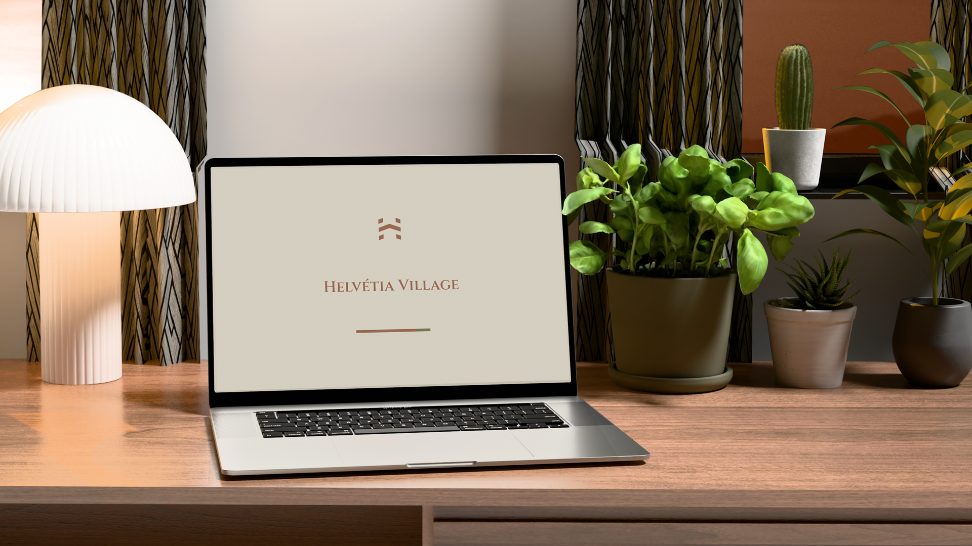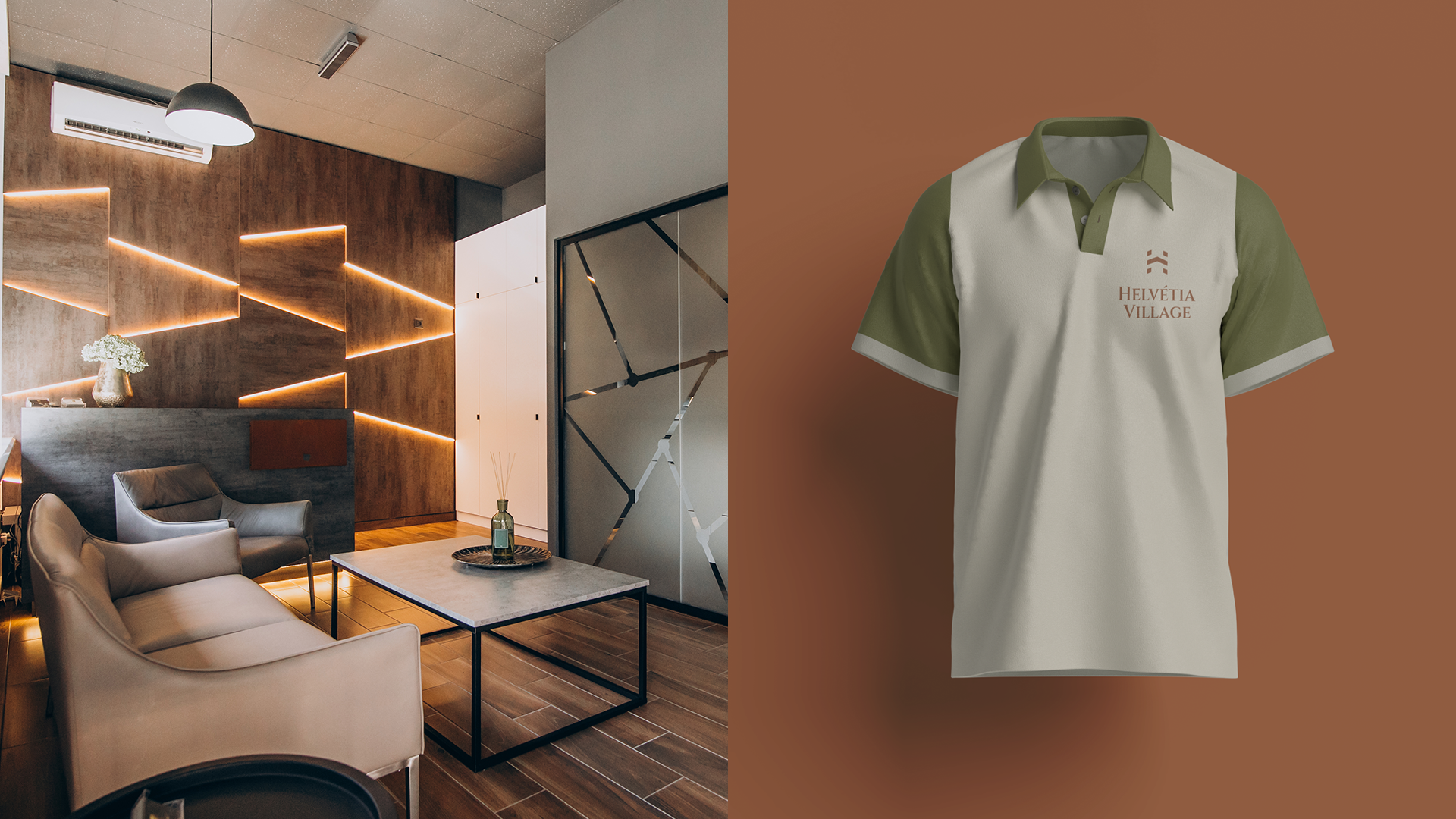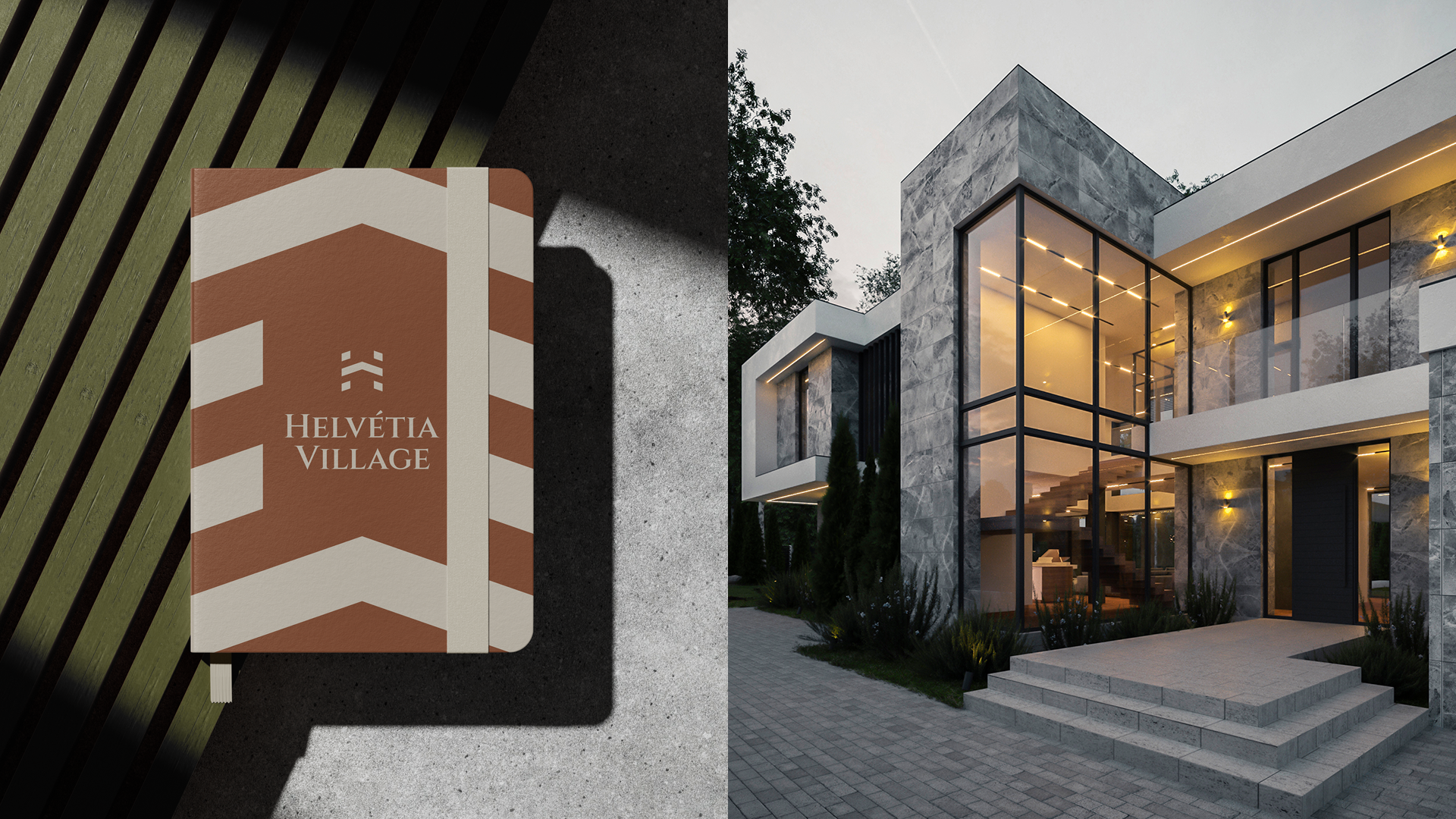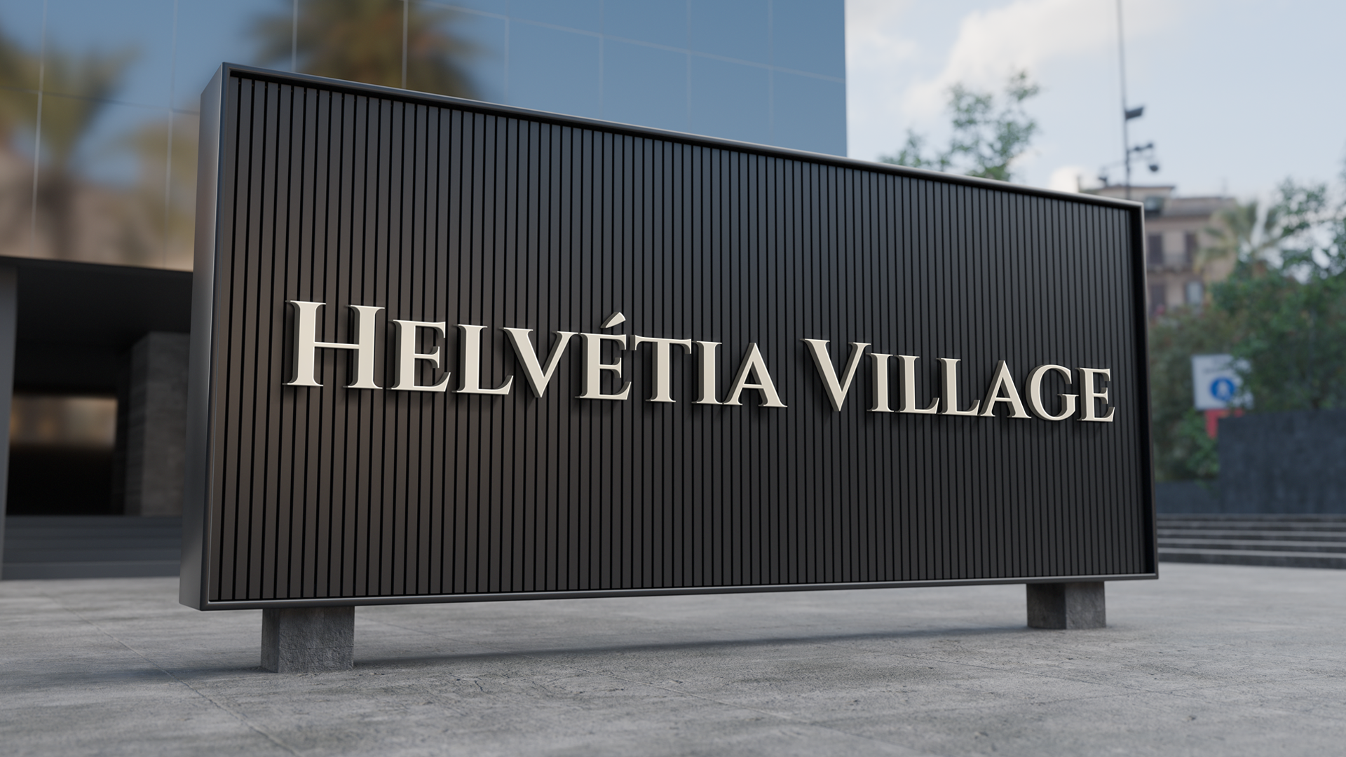 A identidade visual do Helvétia Village traduz a união entre sofisticação e atemporalidade, combinando modernidade com um tom clássico. O logotipo apresenta um monograma construído a partir da inicial da marca, transmitindo exclusividade, prestígio e solidez. A tipografia reforça esse conceito com linhas elegantes e clássicas, que equilibram tradição e contemporaneidade, refletindo o estilo refinado e acolhedor do empreendimento.
