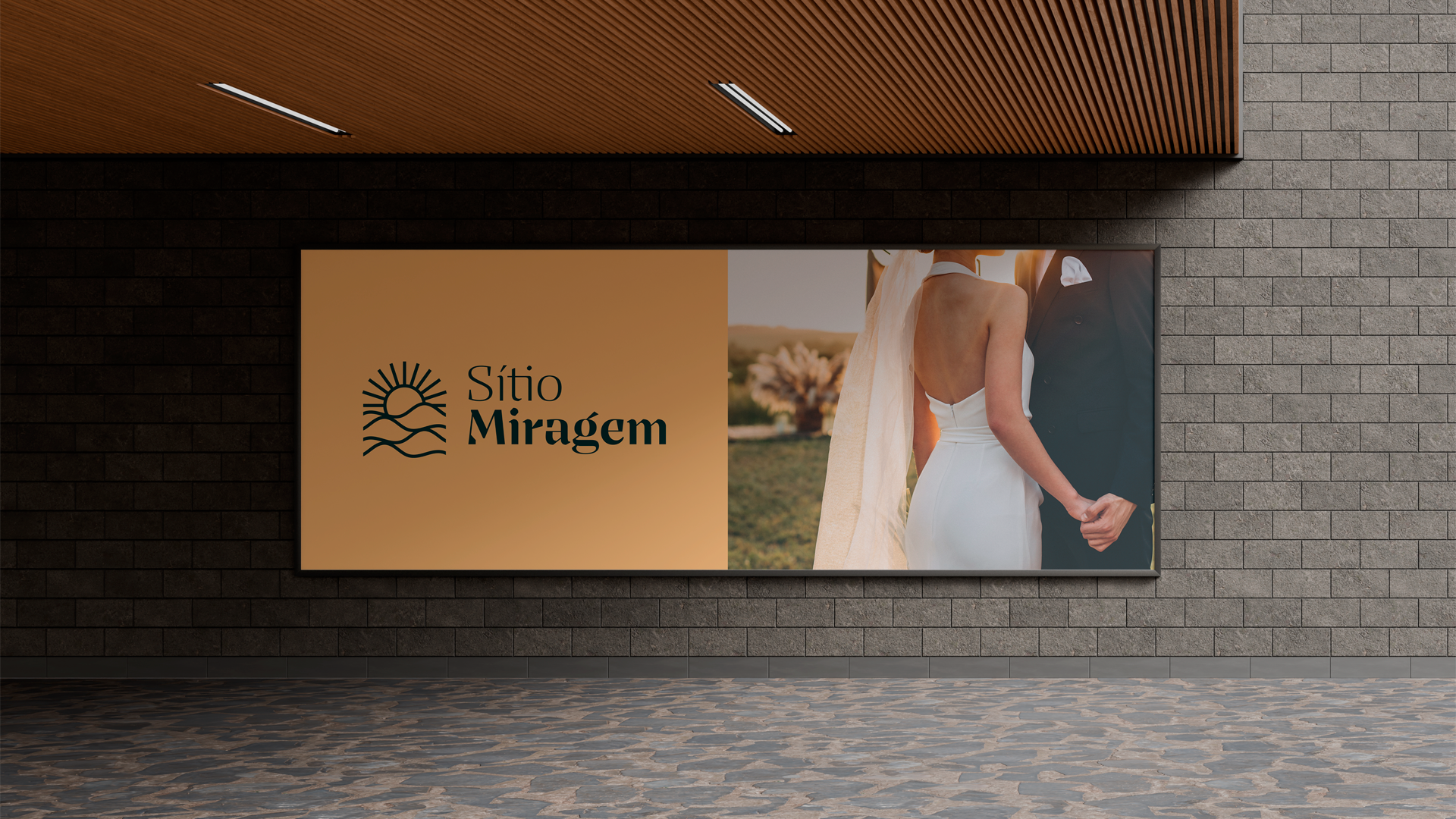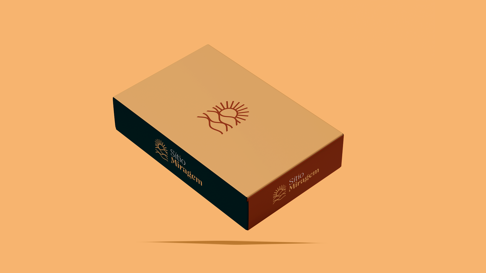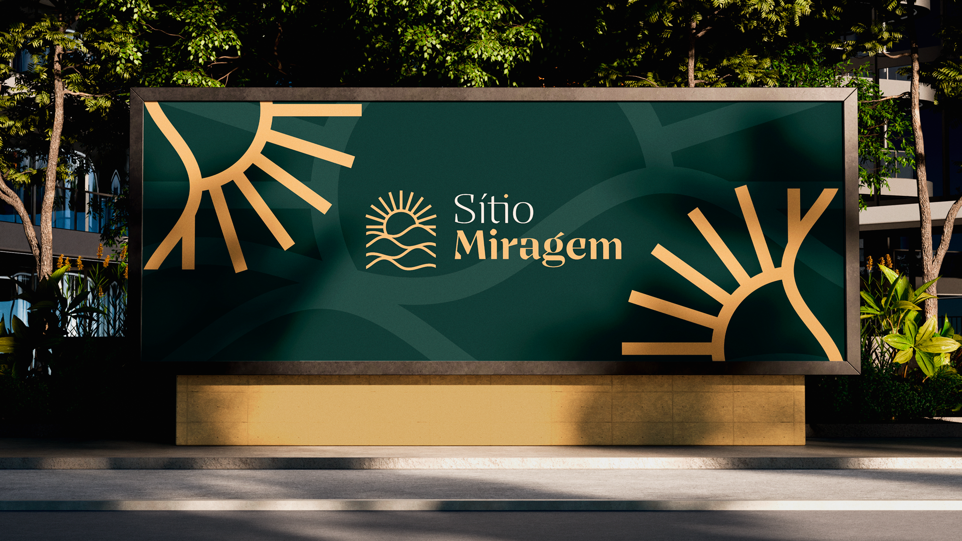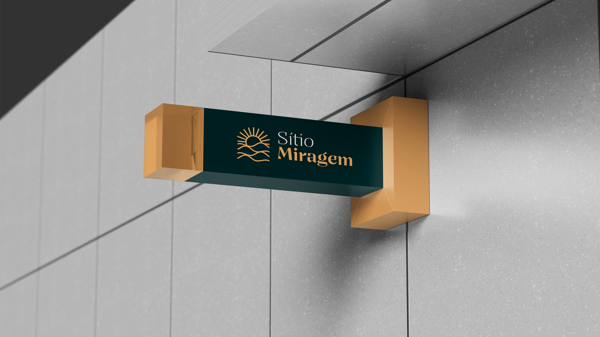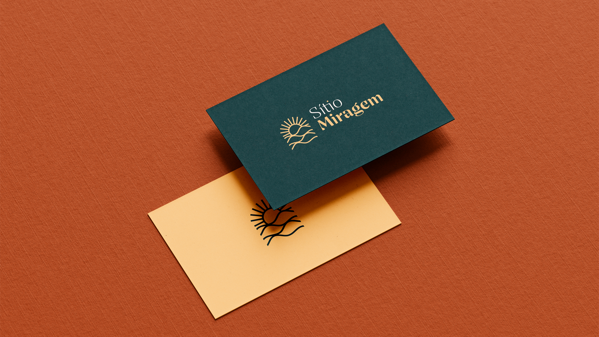 A identidade visual do Sítio Miragem combina elegância e simplicidade, refletindo o conceito que inspira o nome. O símbolo remete às ondulações da areia e ao sol ao fundo, criando a sensação de miragem em um deserto. A tipografia reforça essa ideia com formas sofisticadas e leves, resultando em um logotipo minimalista, harmônico e alinhado ao posicionamento refinado da marca.